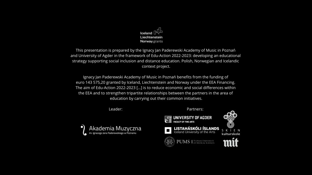 Scholarly Video Lecture Series joining scholars from Iceland, Poland and Norway. The series was part of the Norwegian contribution, covering a range of topics on Classical music performance and education.